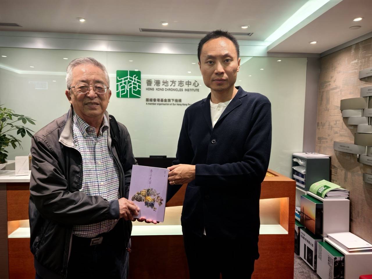 2025年11月14日,香港共工新闻社高级新闻顾问、中国新闻发布杂志策划、中国红刊传媒创始人黄光宇赴香港地方志中心交流,中国社会科学研究院近代史研究所研究员、香港地方志中心副总编刘蜀永向黄光宇赠送《香江史话》一书。